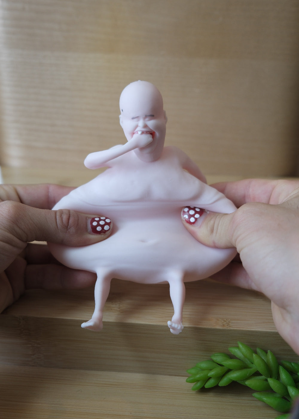 Instead of sand, he’s packed with a thick, dough-like gel that gives him that slow-squish, ultra-bendy feel perfect for fidgeting and stress relief.